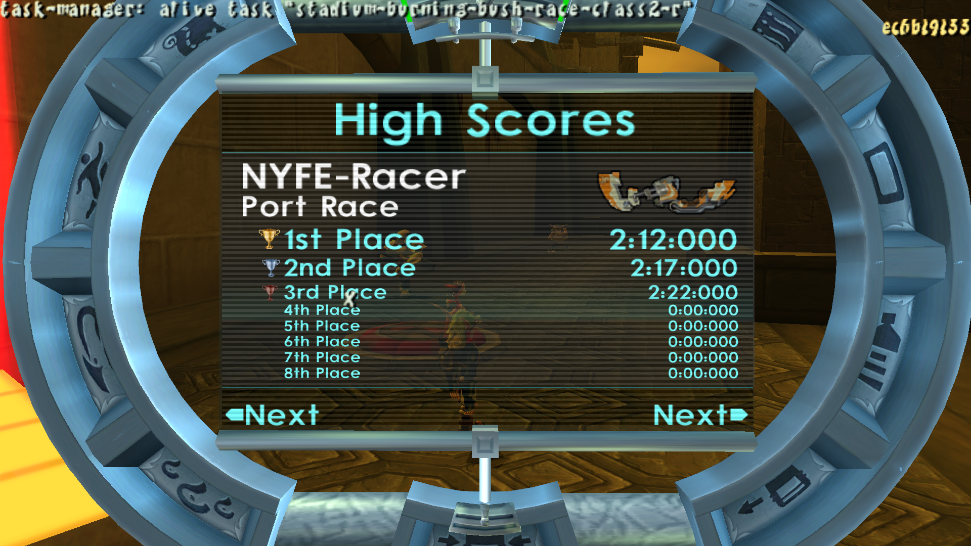 In the original game, if you selected a specific stadium race, went into the Stadium, ran back immediately to the Stadium computer and loaded a different race that does not change the layout (e.g. selecting the reverse variation, or simply looping over the menu back to the same race), the game would crash upon entering the Stadium or dying in the vicinity.
