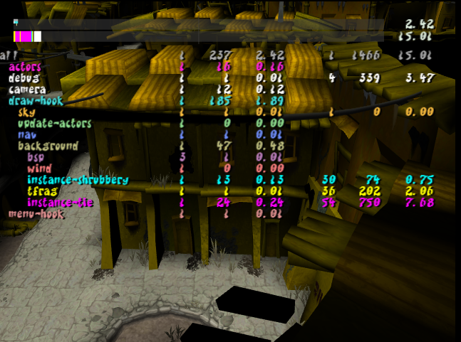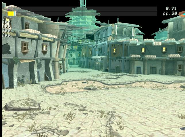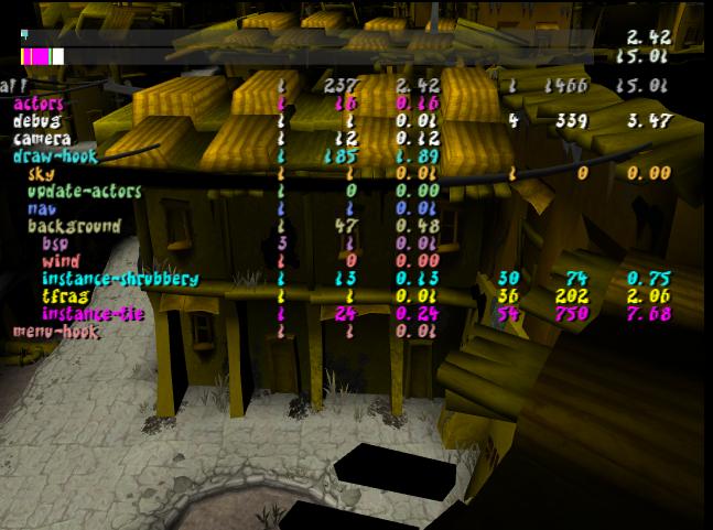 [2022-09-30] Time-of-day now allows for different weights for red green and blue. Here the ground is drawn with Jak 1's system, the building with Jak 2's